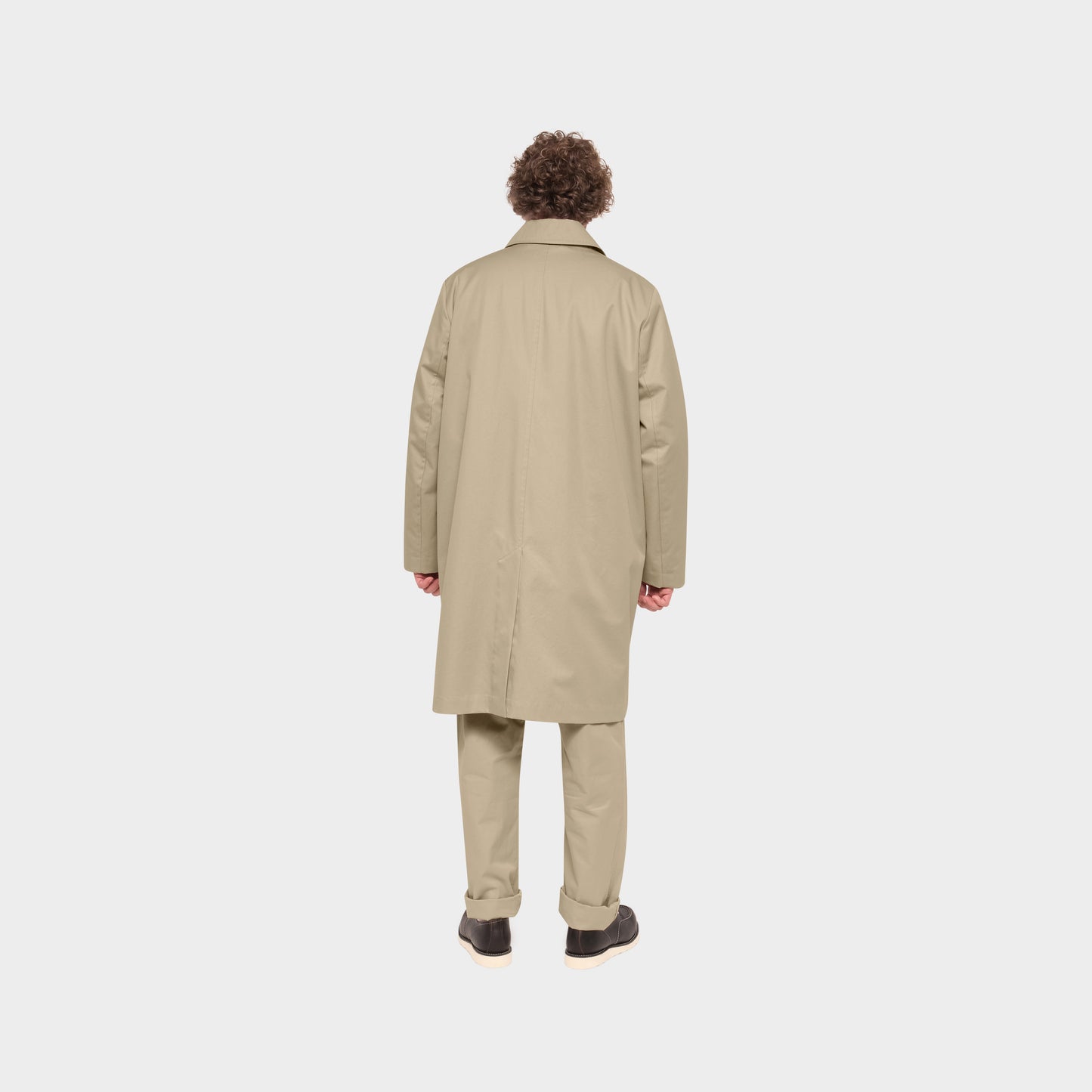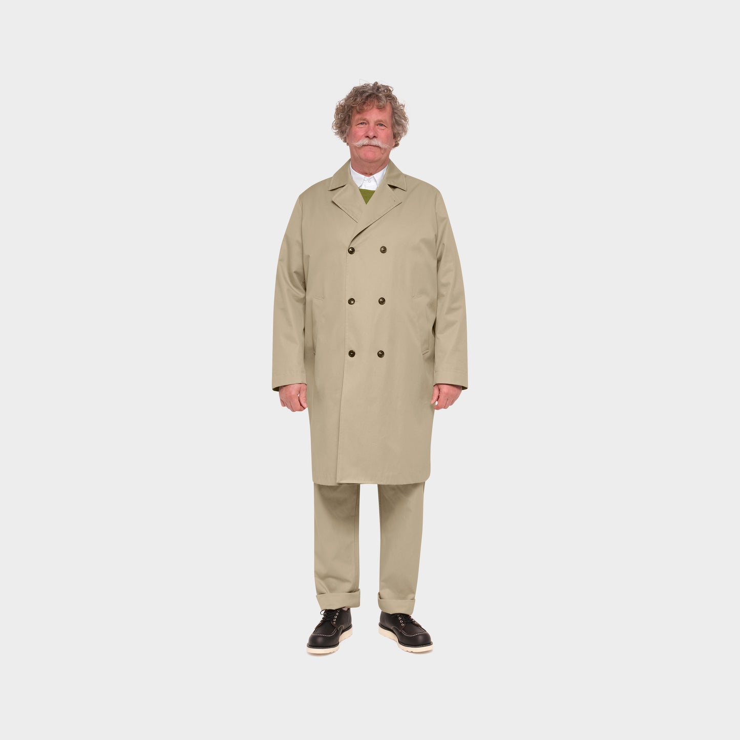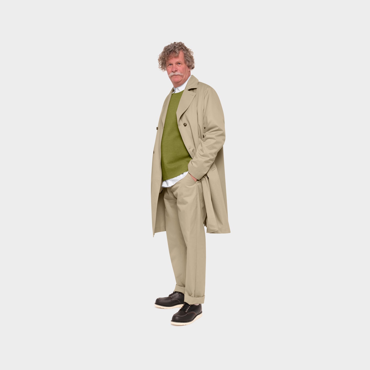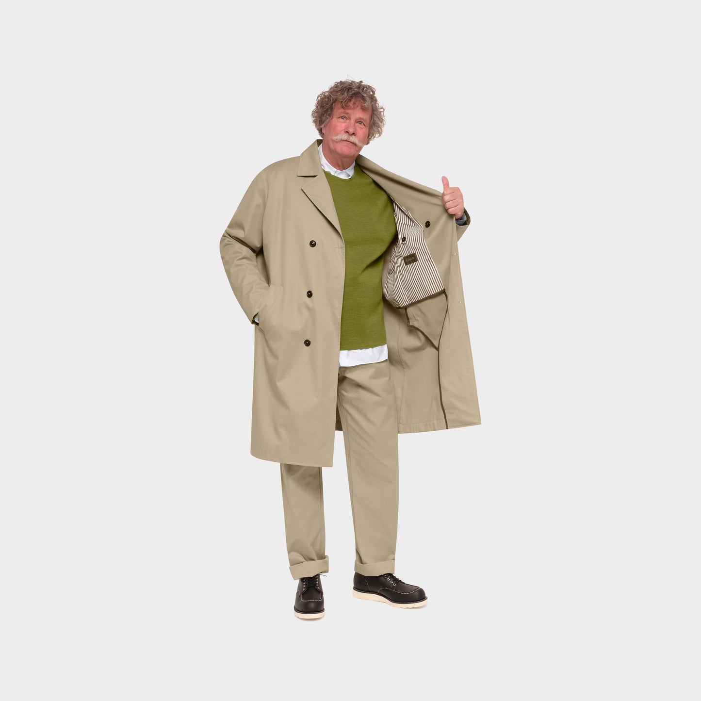Kiefer ist ein großzügig geschnittener OMEN Mantel. Sein weiter und knielanger Schnitt und die leicht überschnittenen Schultern werden mit einem klassischen Reverskragen kombiniert.