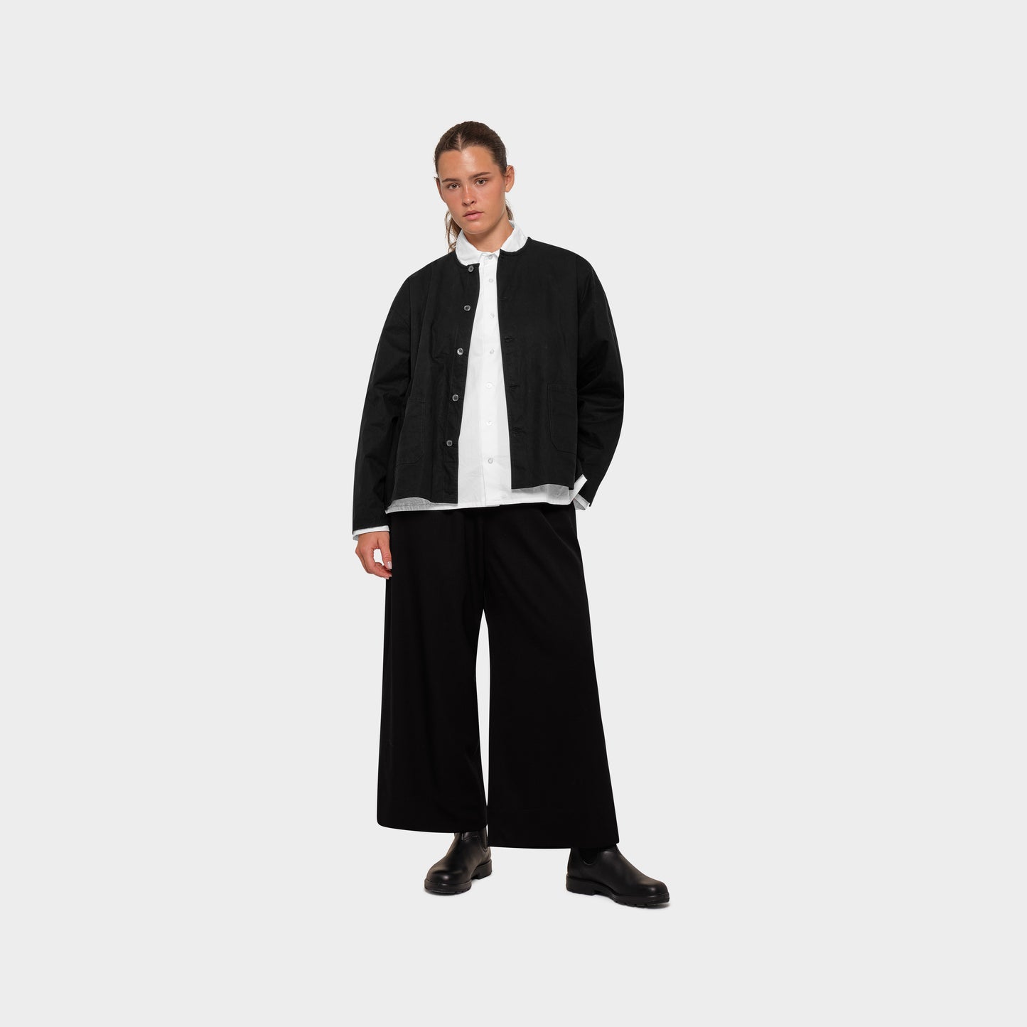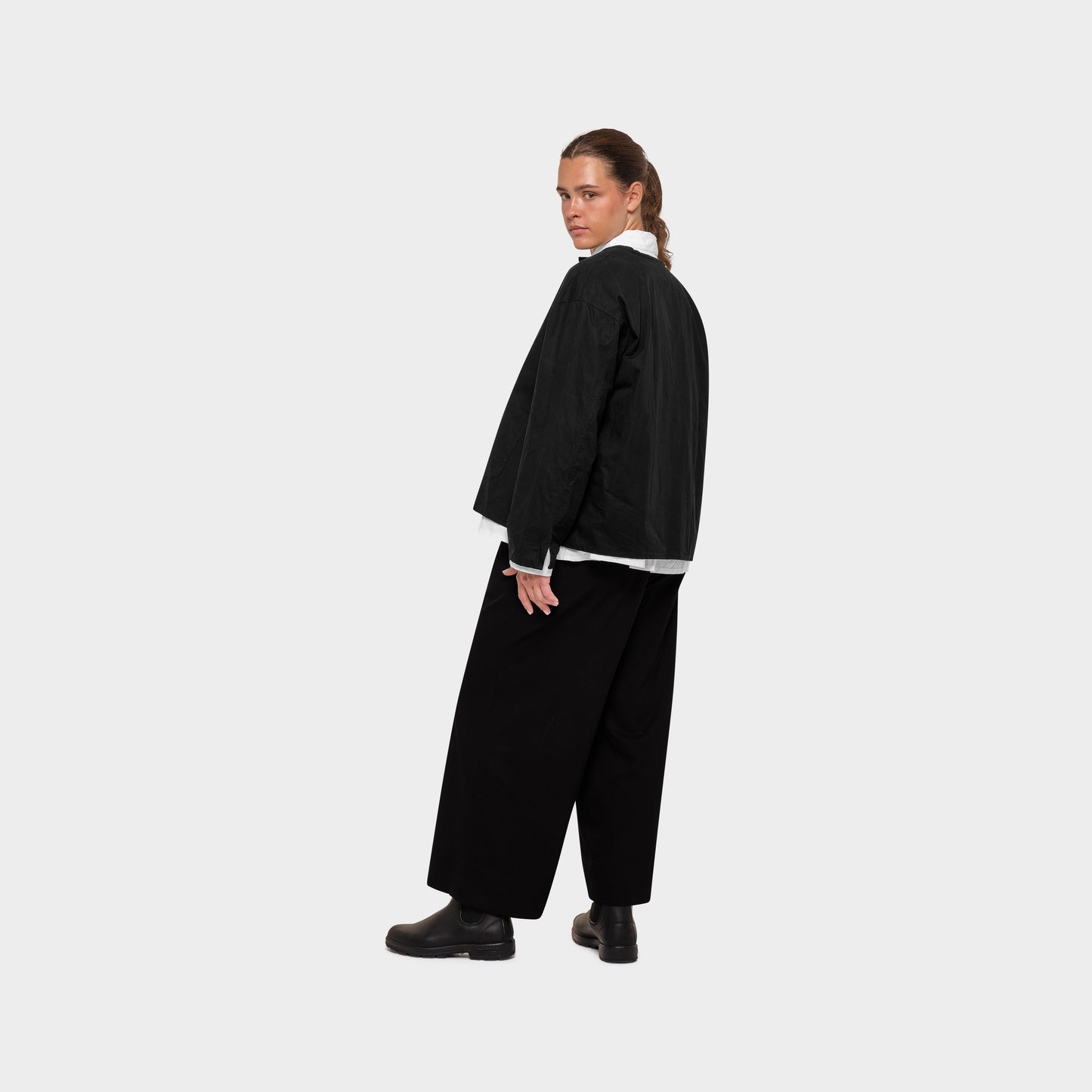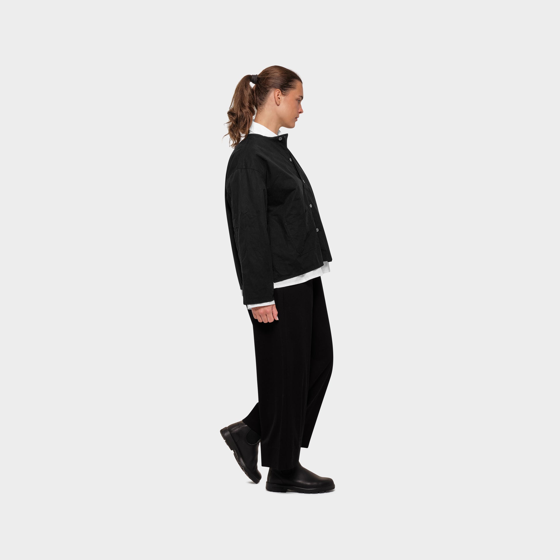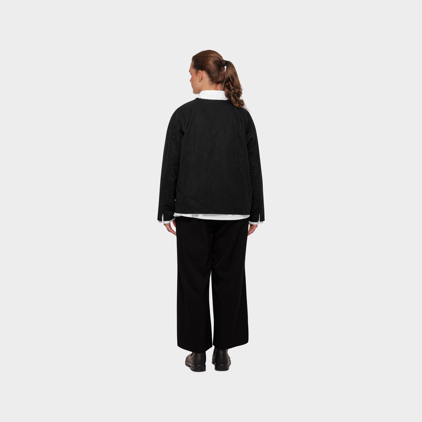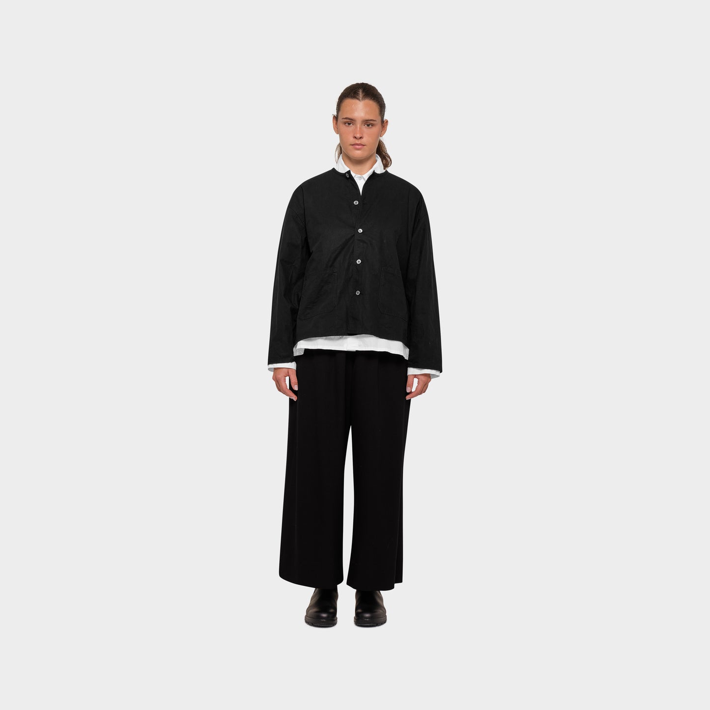Mylo ist ein OMEN Oberteil mit weitem Schnitt, das an eine lässige Jacke erinnert. Der gerade Saum am Rumpf und die zwei aufgesetzten Taschen vollenden das Oberteil.